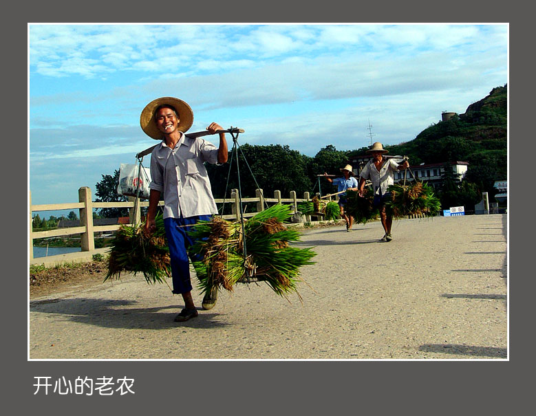版主就是版主大师级水准!喜欢1、3、4图好片,1图有点象傍晚?云层有些发暗、层次感很强,3图开心的老农叼着烟啳,眼睛笑成一条縫,咱老伯性今天真高兴!!!