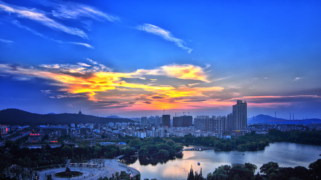 南湖上的晚霞(新手,请多指教) |