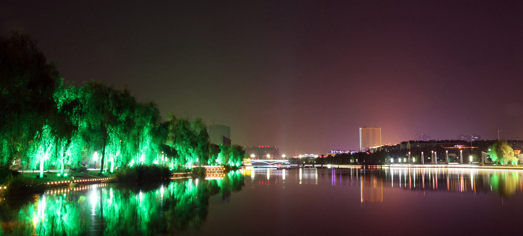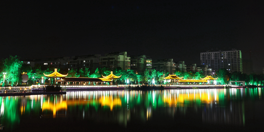 夜色下的护城河 |